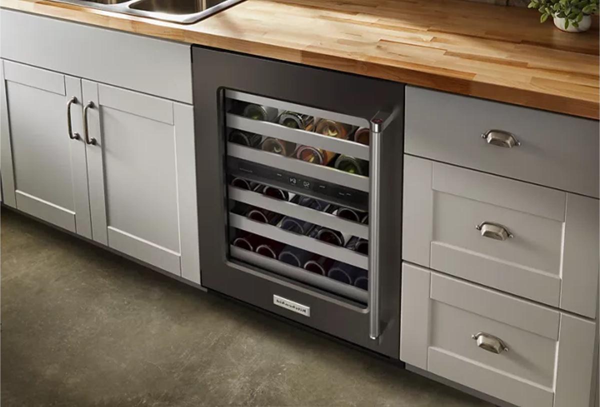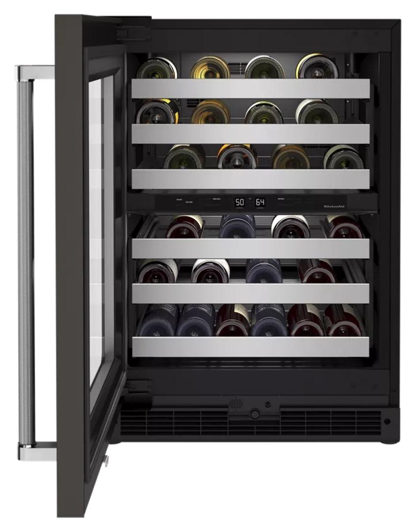 Cava de Vinos 24" (60 cm) apertura izquierda Marca: KitchenAid Modelo: KUWR314KBS Color: Negro Inoxidable (2025 09)